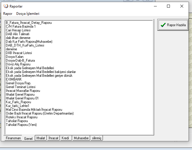 Firmaya özel günlük ve analitik raporlamalar yapar. İhtiyaca göre yeni raporlar tanımlayabilirsiniz. Grafik ve tablo tipinde sonuçlar almanızı sağlar. Verilerinizi Excel ortamına taşımanızı sağlar.